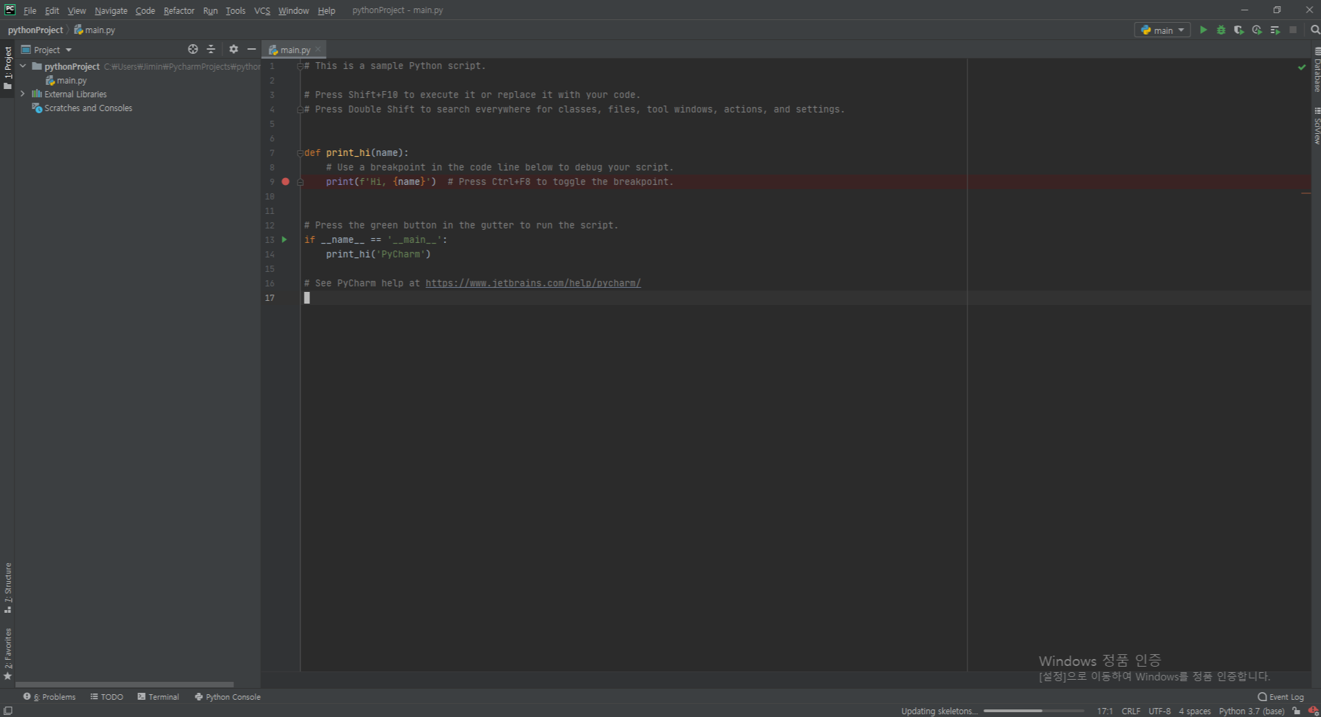 pycharm 첫 화면