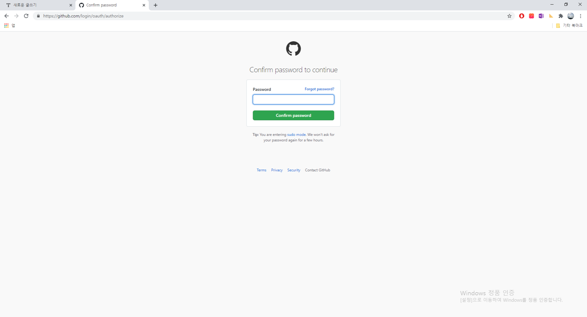 github 비밀번호 입력