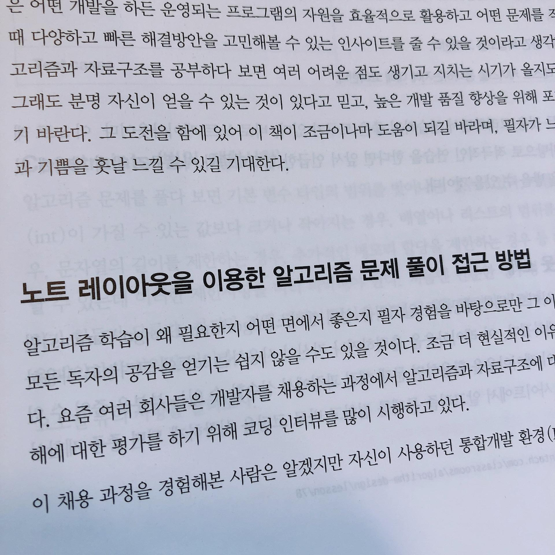 실제 개발자로 취업을 하게되면 현실세계의 문제들을 해결해야한다. 이럴때 알고리즘에 대한 기본 지식은 빛을 발하는데, 현실 문제에 대한 대략적인 접근방법뿐만 아니라 어떤 알고리즘과 어떤 자료구조를 사용해야할지 고민하게 되는 습관도 기를 수 있으며 동료의 코드를 리뷰해줄 때 더 좋은 제안을 할 수 있다는 것이다.