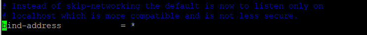 처음에는 bind-address = 127.0.0.1로 되어있을텐데 얘를 *로 변경해주면 됨.