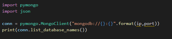 conn = pymongo.MongoClient("mongodb://{}:{}".format(ip,port))