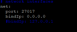 1. 리눅스에서 vi /etc/mongod.conf 에 환경설정을 변경해준다.
