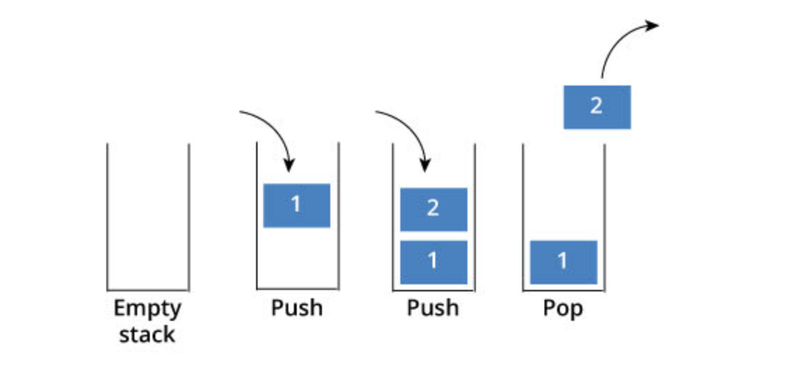 - 스택은 입구와 출구가 동일한 형태로 후입선출(Last In First Out) 구조를 가진다. 나중에 들어온 값이 먼저 나가는 구조.