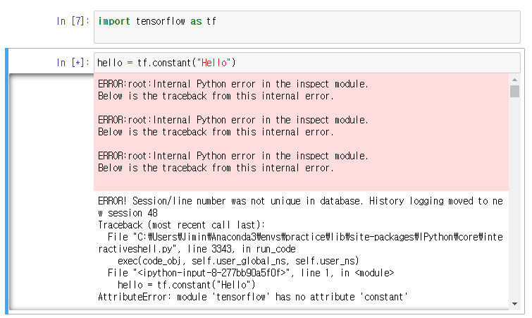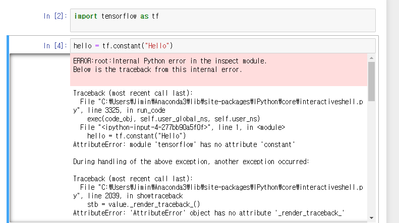 실행 후 기쁜 마음으로 tensorflow를 import 했는데 오류가 떴다.