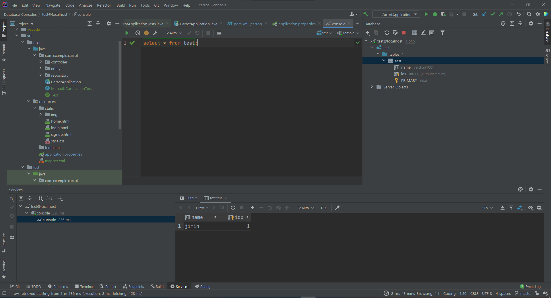 1. 일단 인텔리제이의 DataBase 에서 mariaDB랑 연결해보기