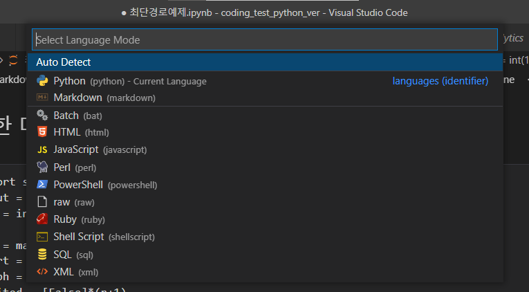 VSCODE에서 주피터 노트북 사용할 때 셀 언어가 CVE로 보이는 경우 해결법