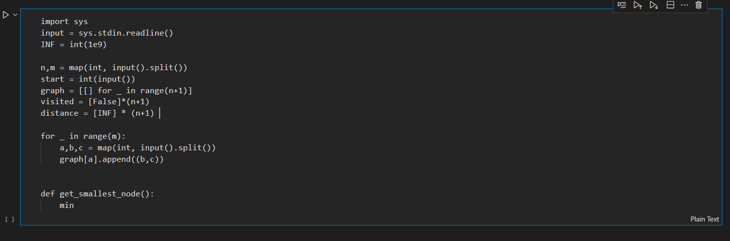 주피터 노트북에서 코드를 입력했을 때 언어가 CVE로 선택되면 색깔도 입혀지지 않고 단축키도 먹히지 않는다.