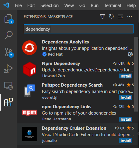 1) vscode의 extension -> Dependency Analytics 검색