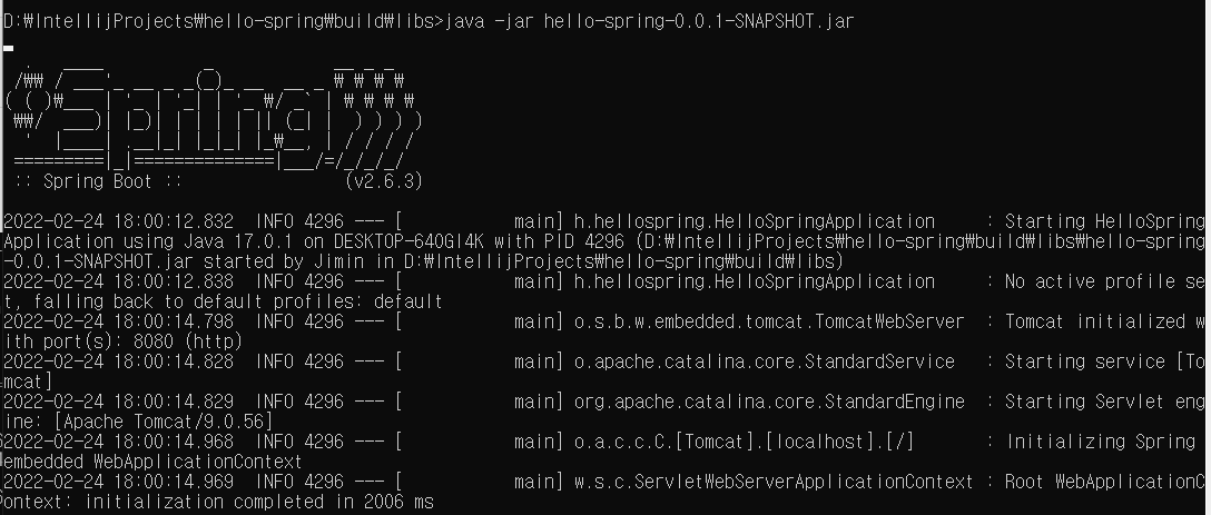 personal project location\build\libs > java -jar personal project-SNAPSHOT.jar