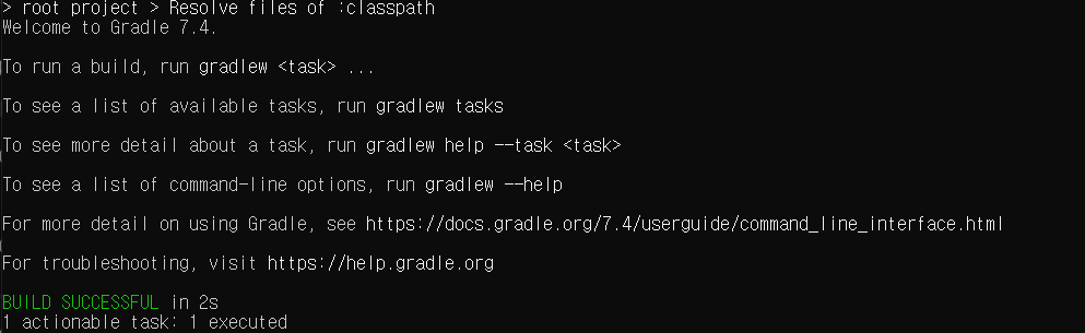 4. "BUILD SUCCESSFUL" 이라는 문구가 나오면 gradlew build 명령어 실행