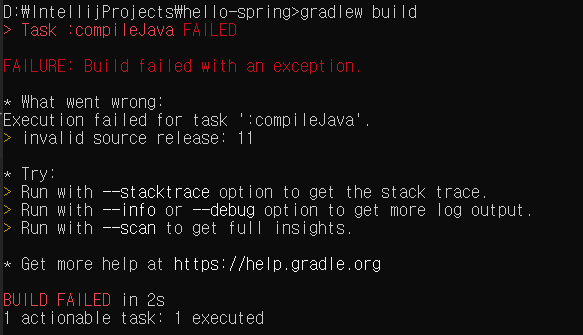2. Build 시 생기는 에러 > Execution failed for task ':compileJava' 해결법