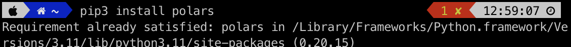 polars의 경우 polars 자체만 설치가 된다. 즉, 다른 라이브러리의 존재 여부와 상관없이 설치가 되므로 비교적 빠르게 동작할 수 있다.
