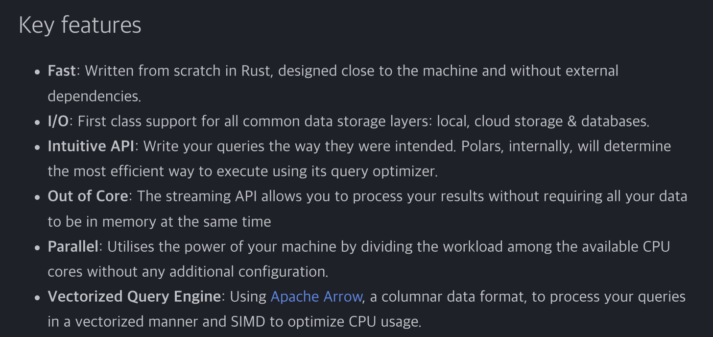 대략적으로 Rust 언어는 빠르고 안전한 Low - level Language! 그래서 Pandas 보다 작동 속도가 훨씬 빠르다.