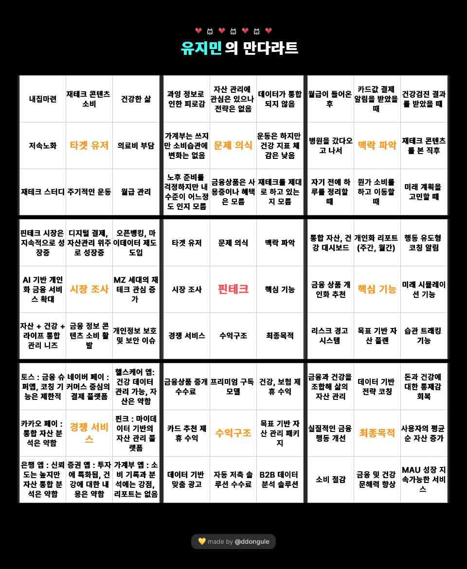 - 자신의 금융, 건강 데이터를 주기적으로 확인하고 개선하려는 20~40대 자기관리형 사용자