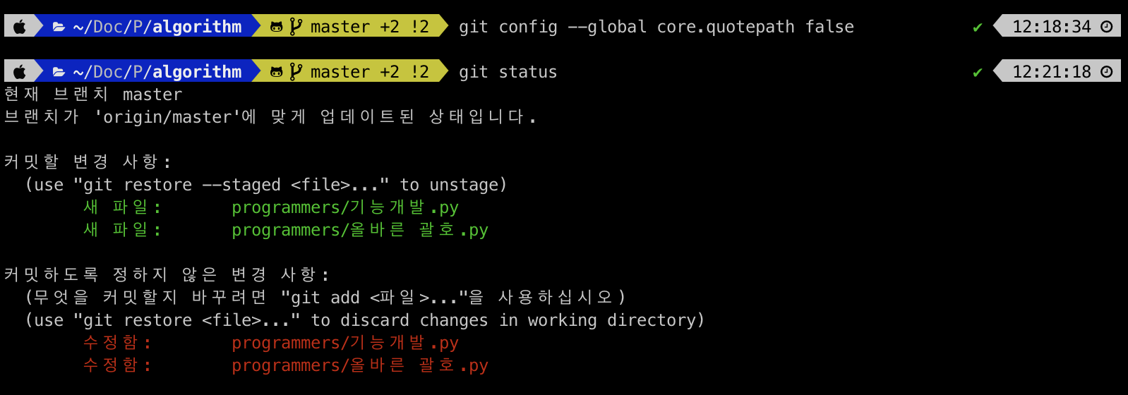 한글로 된 파일 이름을 Git에서 관리하려고 할 때 한글이 아닌 숫자로 나타날 때가 있다.